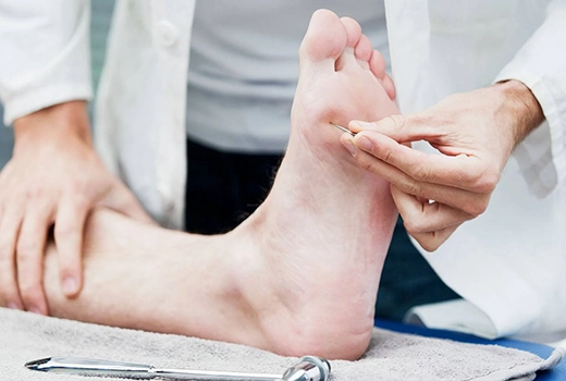 Neuropathy associated with diabetic foot is a condition caused by nerve damage, leading to numbness in the foot. High blood sugar levels damage the nerves, causing patients to fail to notice injuries and allowing wounds to worsen. The most important step in neuropathy treatment is controlling blood sugar levels. This is a critical requirement to slow the progression of nerve damage and to alleviate existing symptoms.